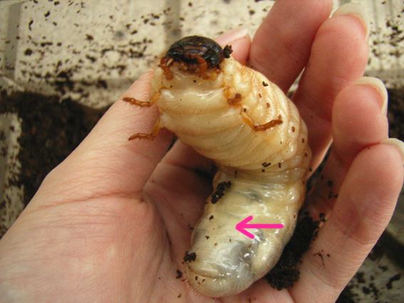こっちの子は土をお腹に抱え込んだままで
