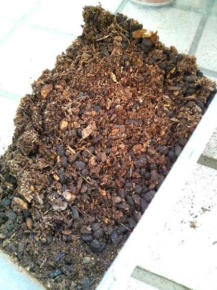 今回ネットで注文したカブトの幼虫用マットに交換。
