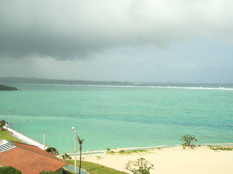 でも風は強いので、リーフの切れ目にかなり白波が立っています。